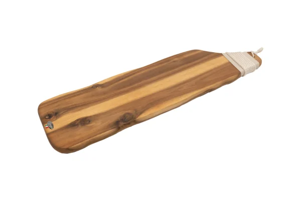 Realizzato in legno di faggio di alta qualità e arricchito con una bitta in acciaio, questo tagliere è perfetto per servire aperitivi e antipasti in modo raffinato.