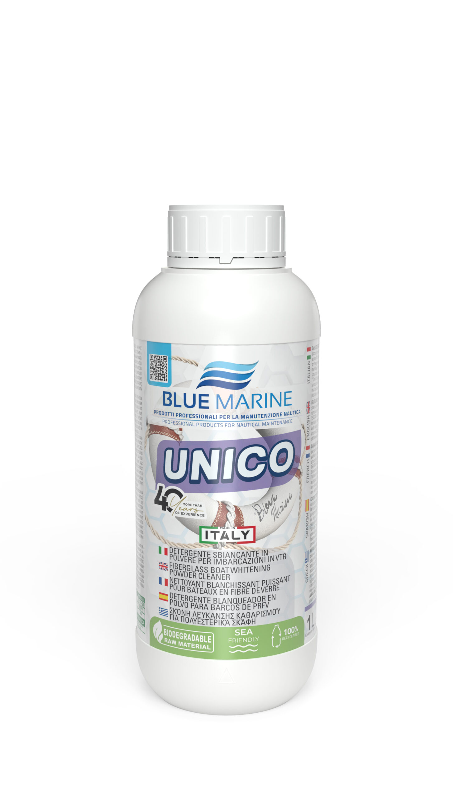 CARATTERISTICHE: Prodotto in polvere per una profonda pulizia di barche in vetroresina. Rimuove con eccezionale forza qualsiasi tipo di sporco, ingiallimenti, linee di galleggiamento, striature nere, lasciando le superfici candide e lucenti. Non graffia, non decolora e non macchia; elimina macchie di ruggine. Lucida e protegge passamani, candelieri e bitte.